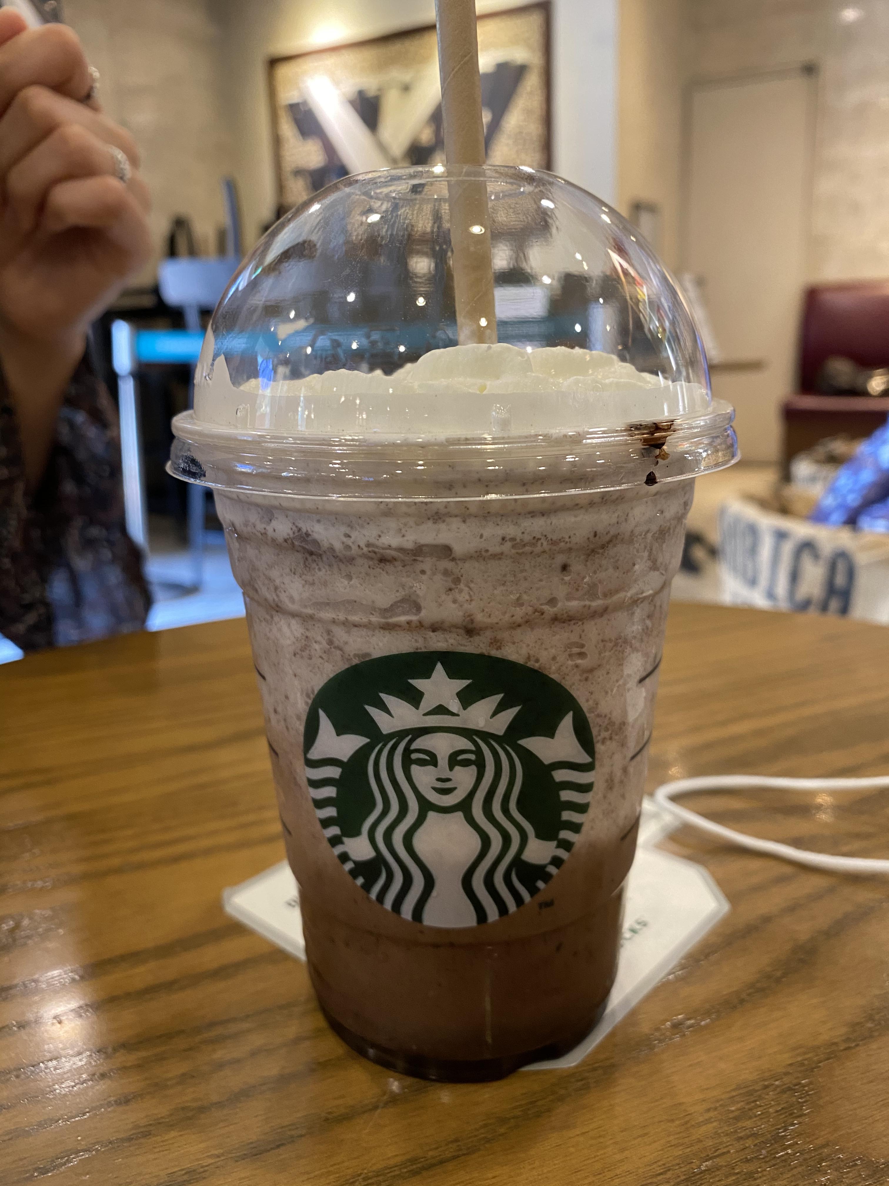 와플과 프라푸치노 사이에는 휘핑이 잔뜩 들어가는데, 휘핑을 빼달라고 하면 빼주실지는 모르겠다.(죄송합니다ㅠㅠ)
